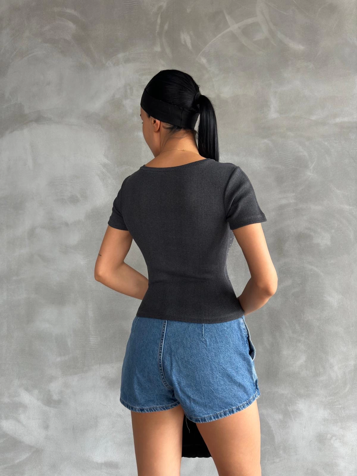 Kadın Kolsuz Boyundan çapraz Geçirmeli Göğüs Damla Detay Kaşkorse Bluz