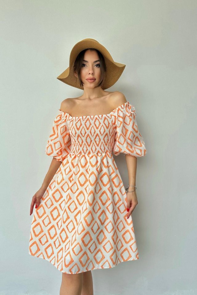 Kadın Kısa Kollu Yakası Açık Katlı Bürümcük Balon Elbise