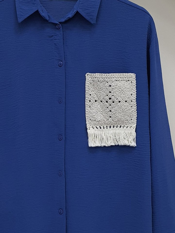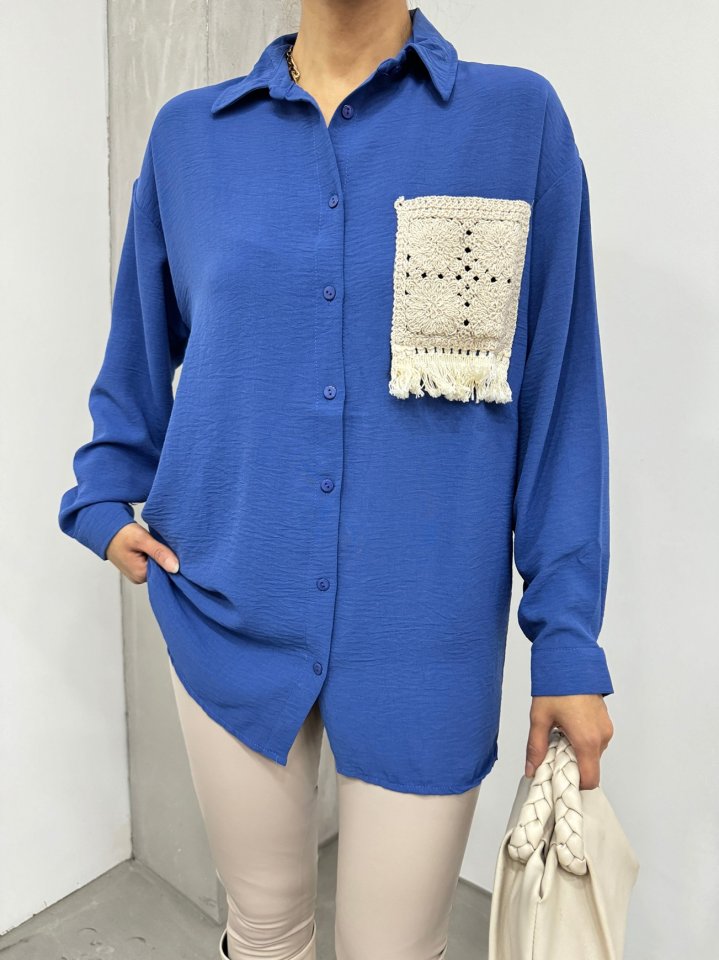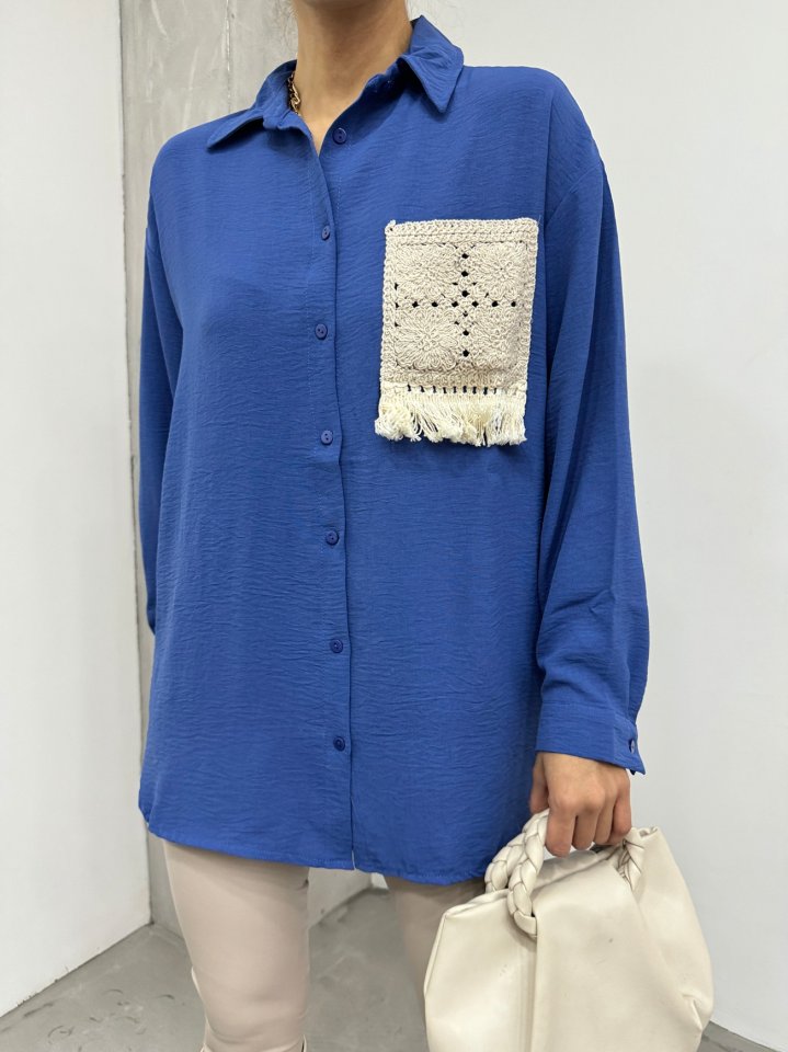 Örgü Cepli Düğmeli Ayrobin Gömlek -İndigo