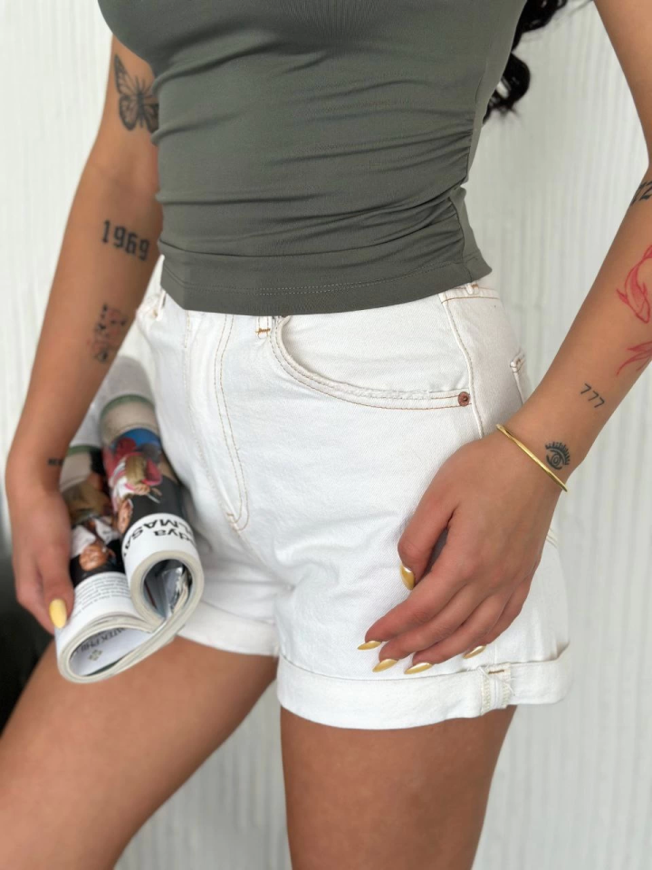 Osy Modal Yumuşak Dokulu Kumaş Bisiklet Yaka Sıfır Kol Bluz Omuz Toka Aksesuar Detaylı - Haki