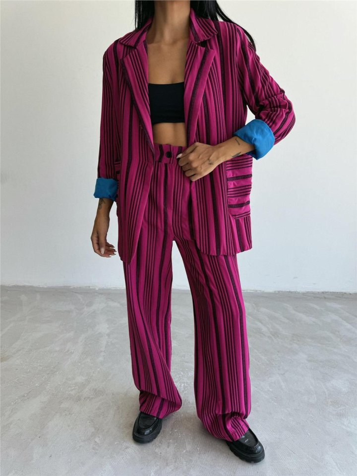 OTTOMAN ÇİZGİLİ CEKET-PANTOLON TK - Fuşya