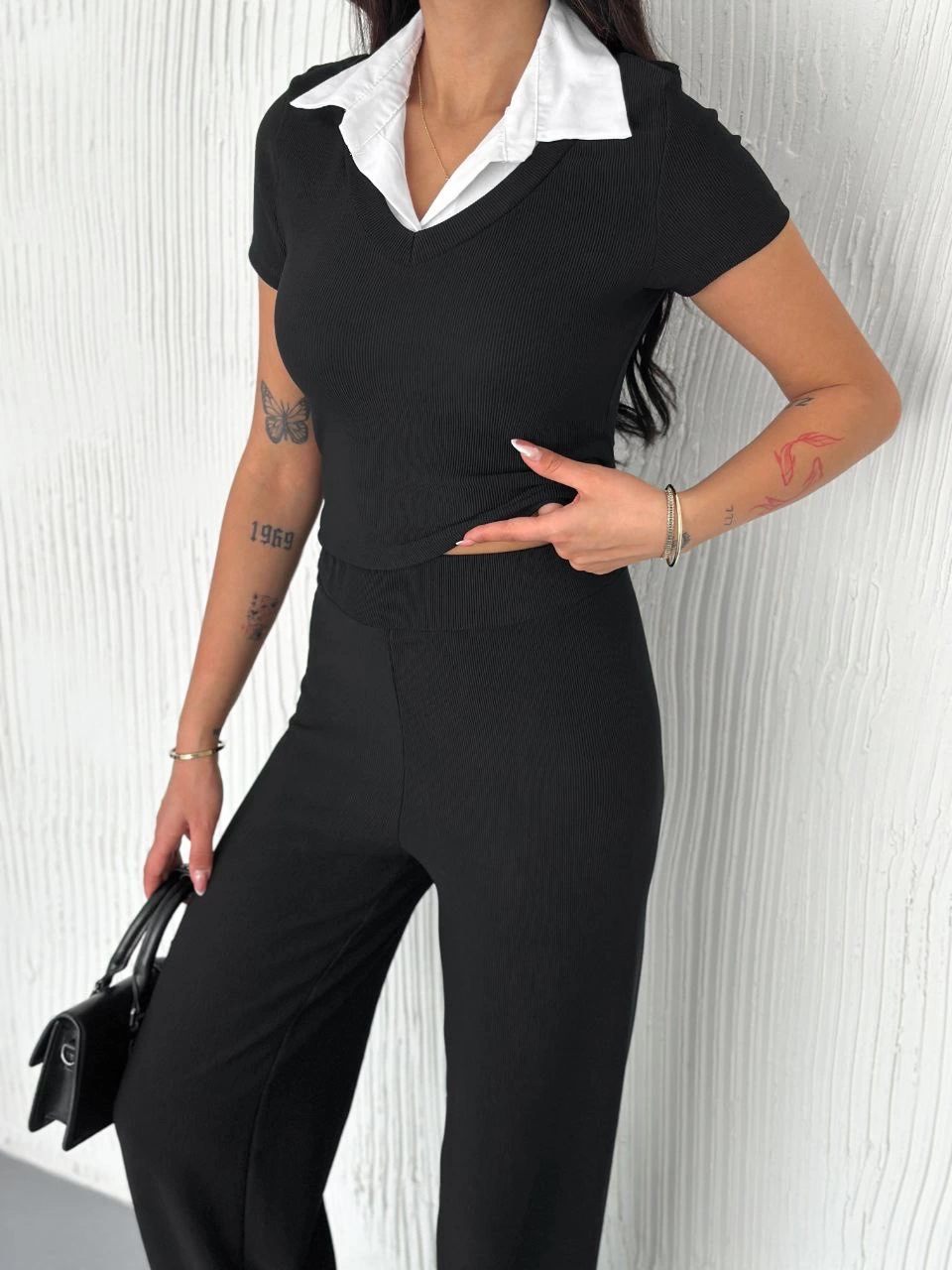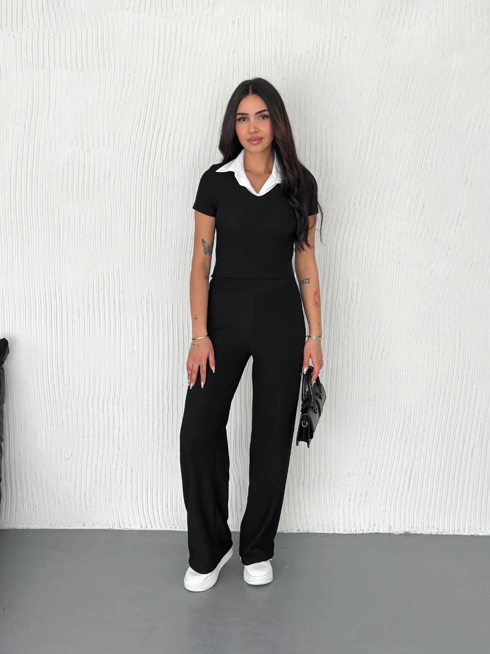 Ottoman kumaş beyaz gömlek yaka takım s4142