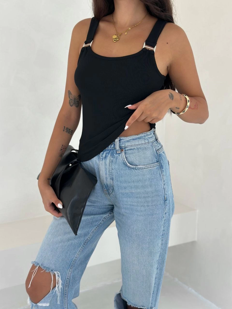 Kadın Kolsuz Boyundan çapraz Geçirmeli Göğüs Damla Detay Kaşkorse Bluz