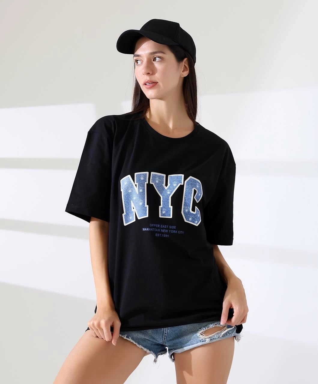 Kadın Uzun Kollu Yakadan Fermuarlı Kot Görünüm Desenli Uzun Modal Bluz
