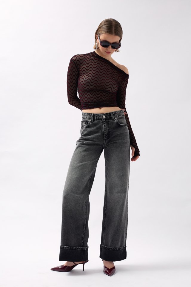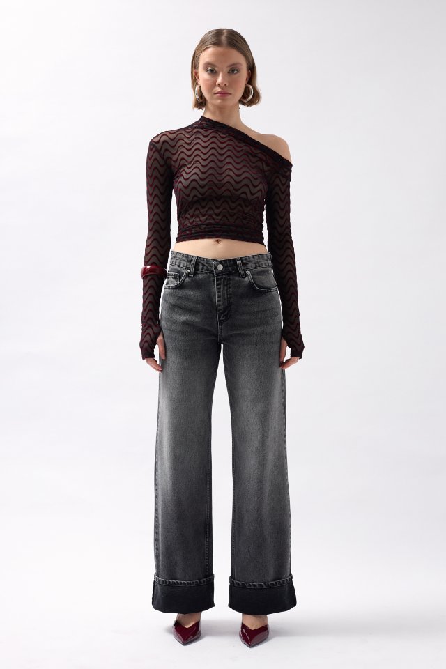 Kadın Tek Omuzdan Açık Uzun Kollu Modal Bluz
