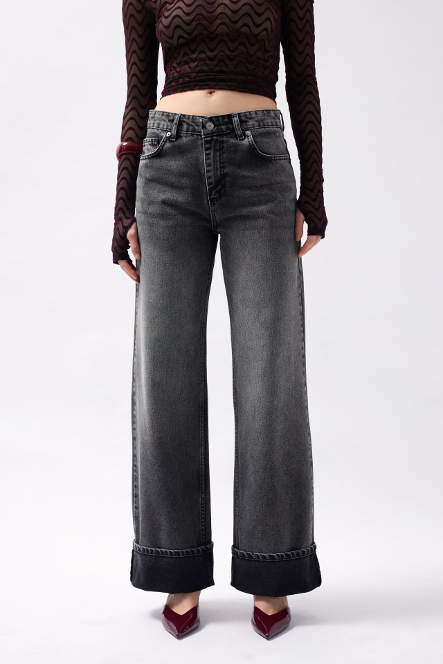 Kadın Uzun Kollu Yakadan Fermuarlı Kot Görünüm Desenli Uzun Modal Bluz