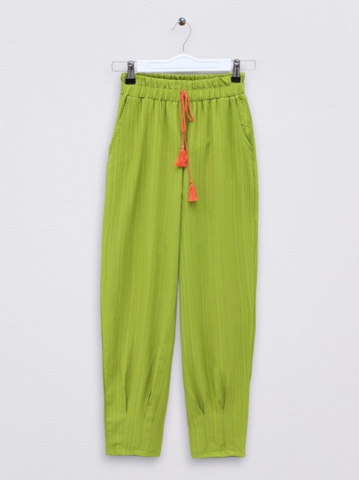 Paçası Pens Dikişli Bağcık Detaylı Pantolon -F.Yeşili