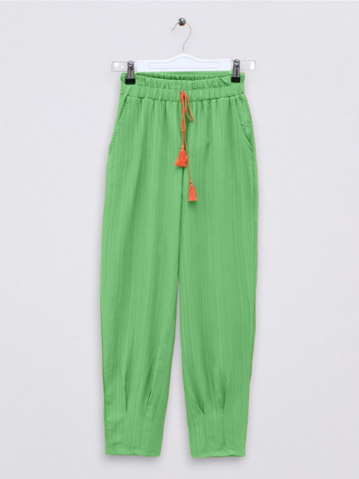 Paçası Pens Dikişli Bağcık Detaylı Pantolon -Yeşil