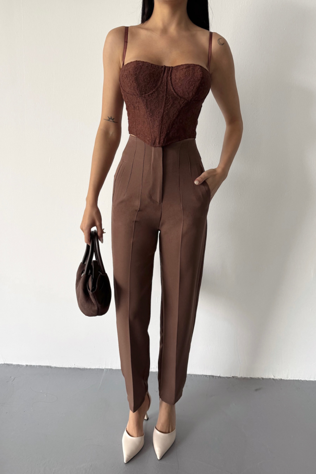 PANTOLON PENSLİ ATLAS KUMAŞ - Kahverengi