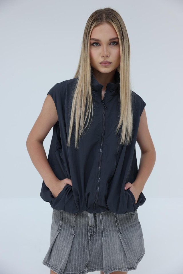 Kadın Kolsuz Boyundan çapraz Geçirmeli Göğüs Damla Detay Kaşkorse Bluz