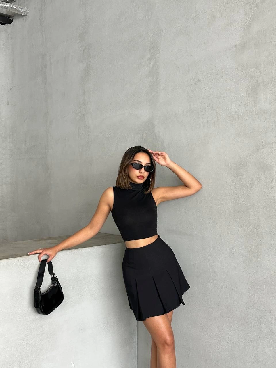 Kadın Kolsuz Boyundan çapraz Geçirmeli Göğüs Damla Detay Kaşkorse Bluz