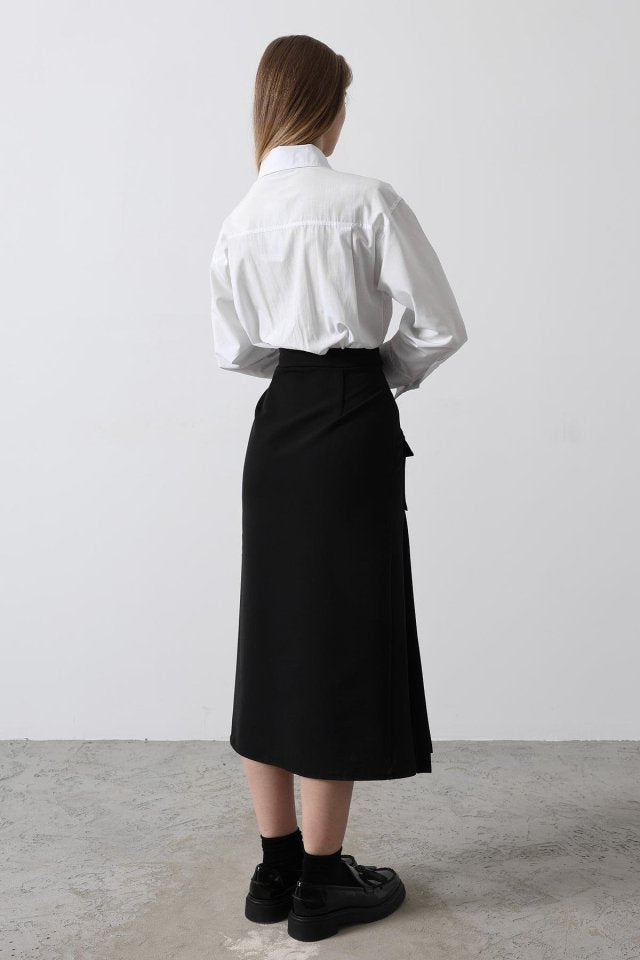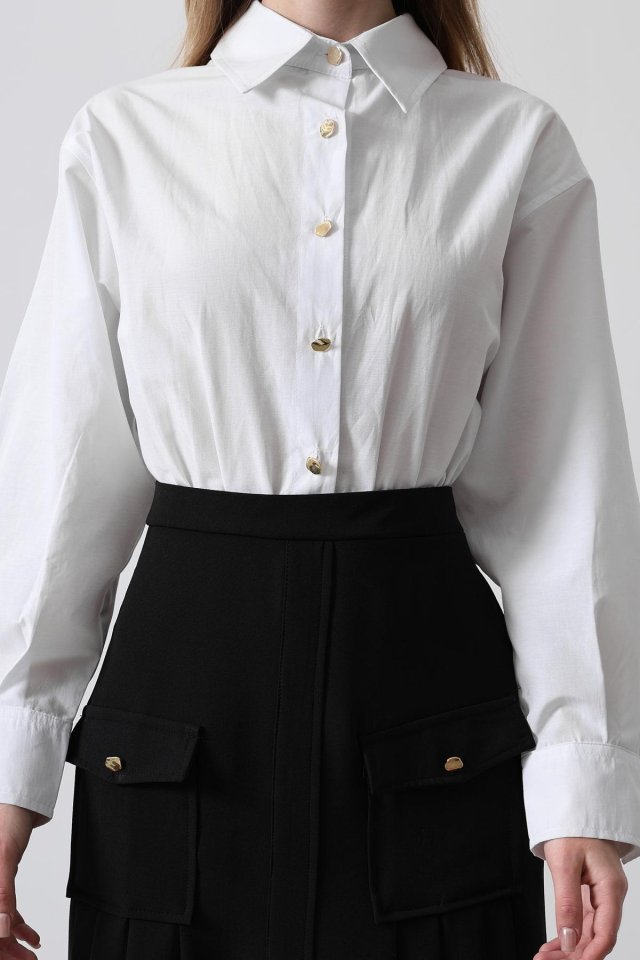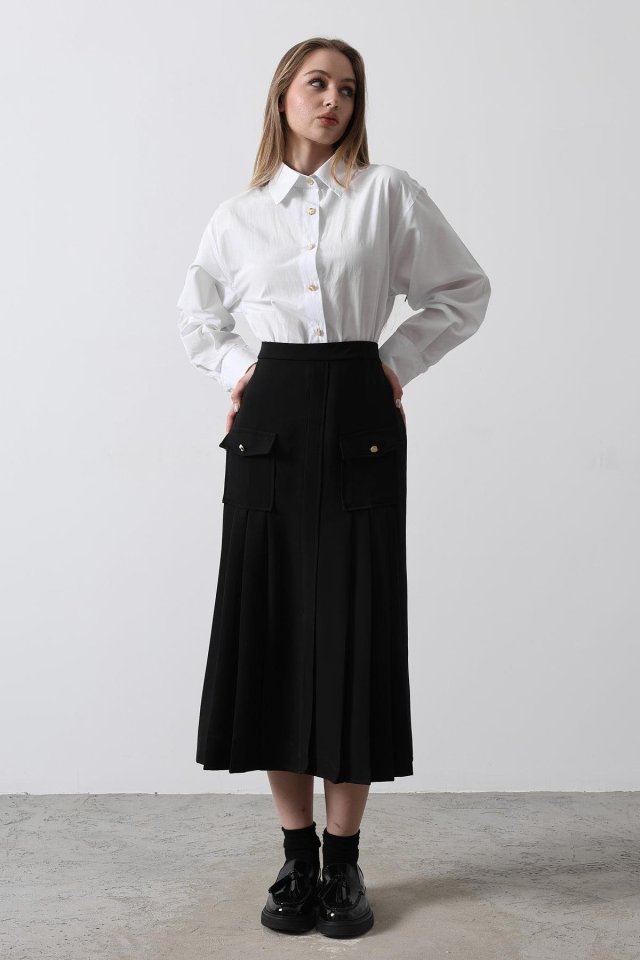 Pileli Kontrast Gömlek Elbise - Beyaz