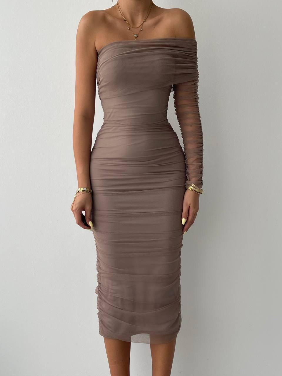 Kadın Tek Omuzdan Açık Uzun Kollu Modal Bluz