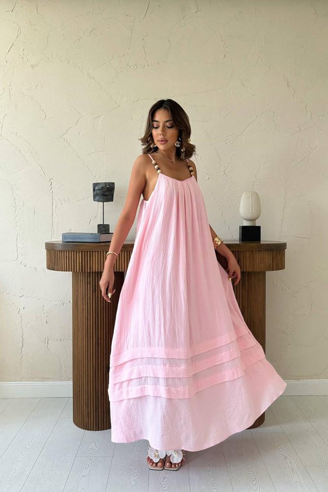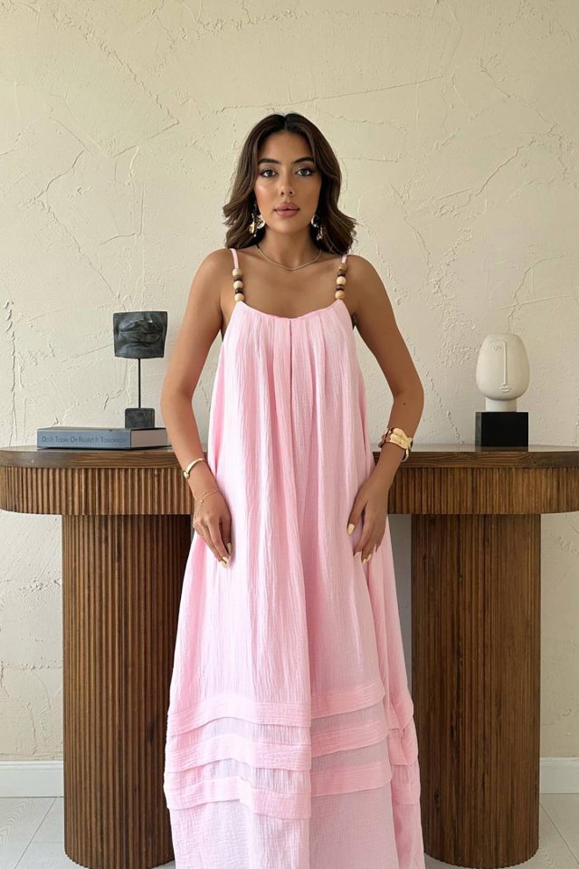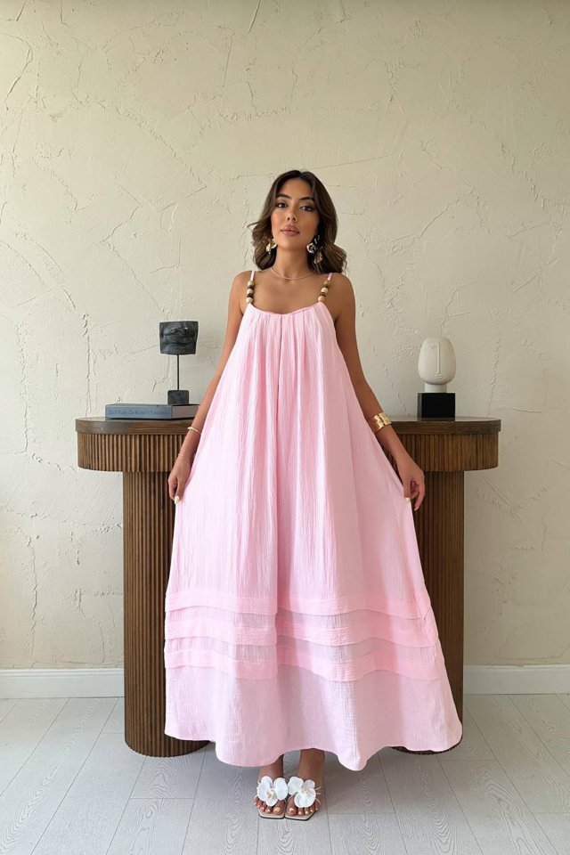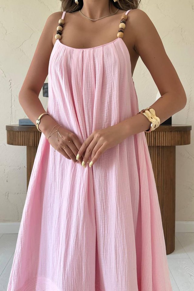 Pudra Askılı Müslin Elbise