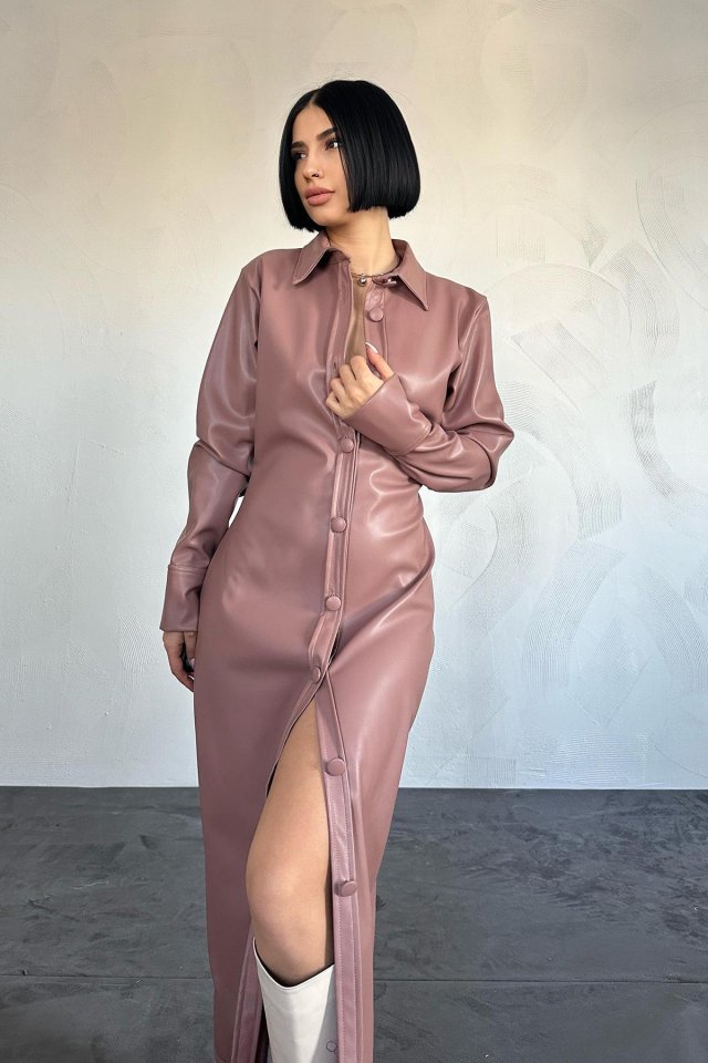 Leopar Sırt Detaylı Leopar Desenli Saten Elbise