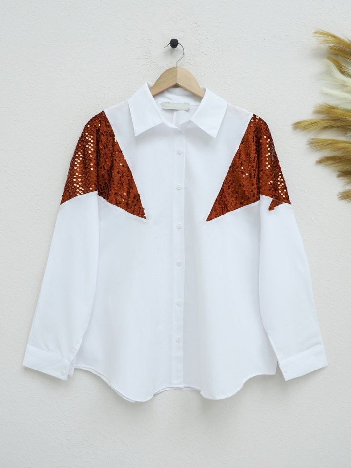 Pul Payet Detaylı Salaş Gömlek -Kiremit