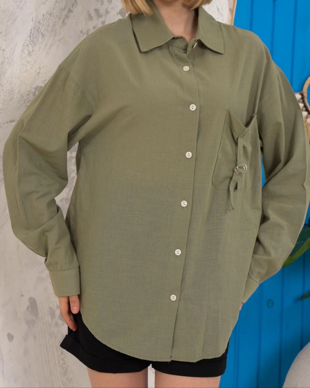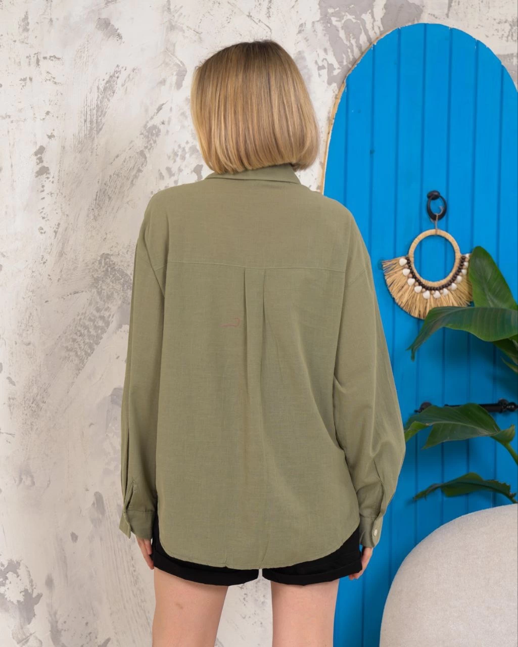 Kadın Uzun Kollu Tek Omuz Askı Detay Salaş Viskon Iki Iplik Bluz