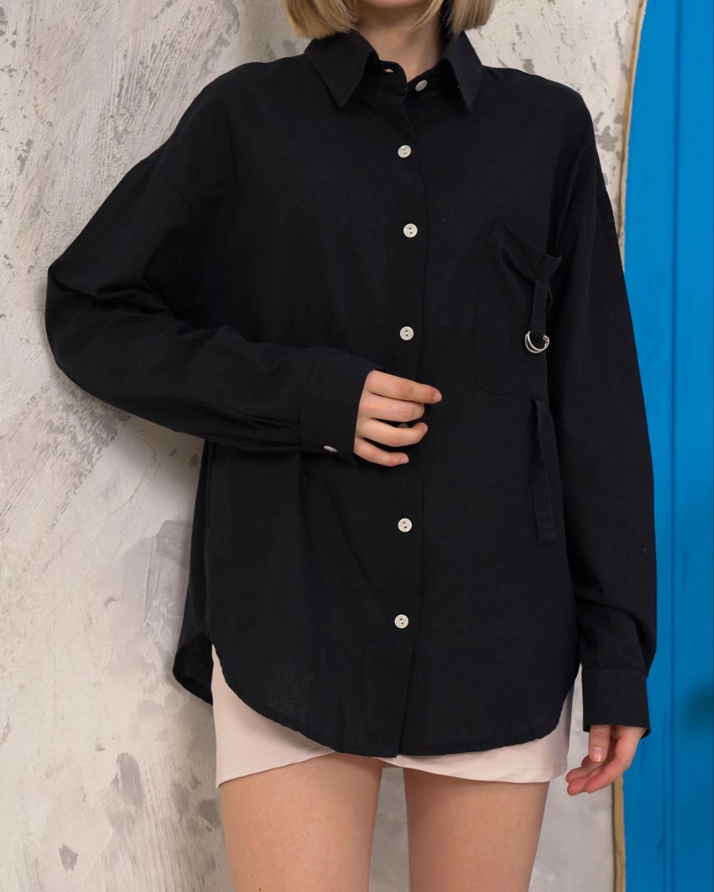Kadın Uzun Kollu Tek Omuz Askı Detay Salaş Viskon Iki Iplik Bluz