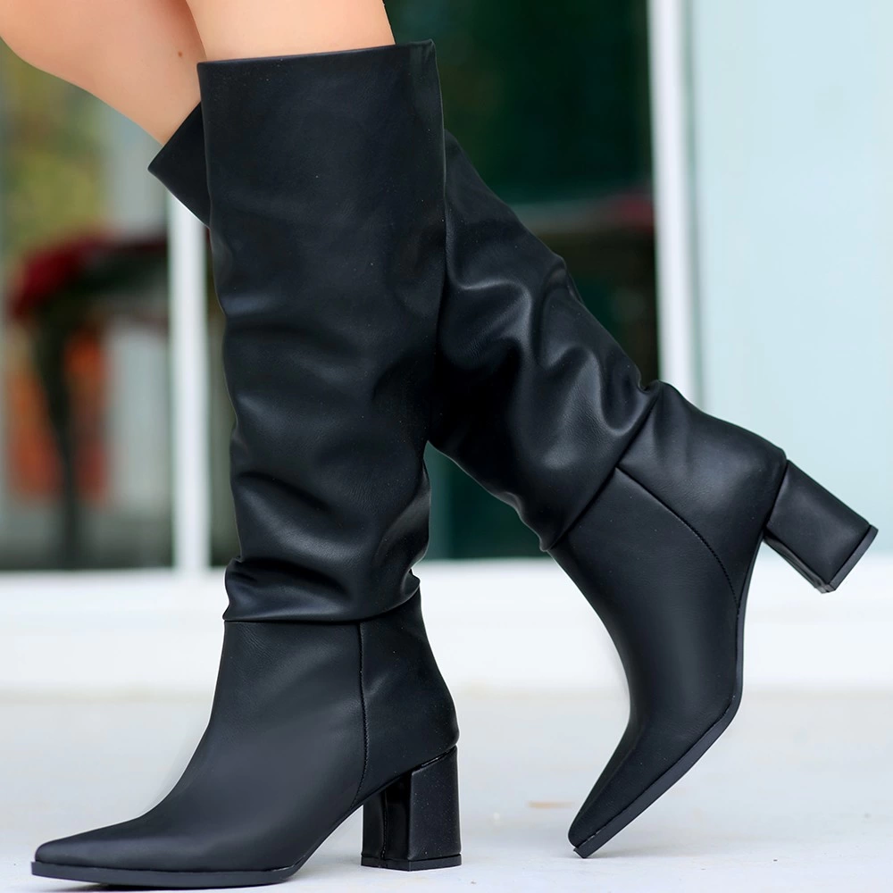 Kadın Uzun Kollu Kruvaze Yaka Büzgü Ve Balon Kol Detay Krep Kumaş Maxi Boy Elbise