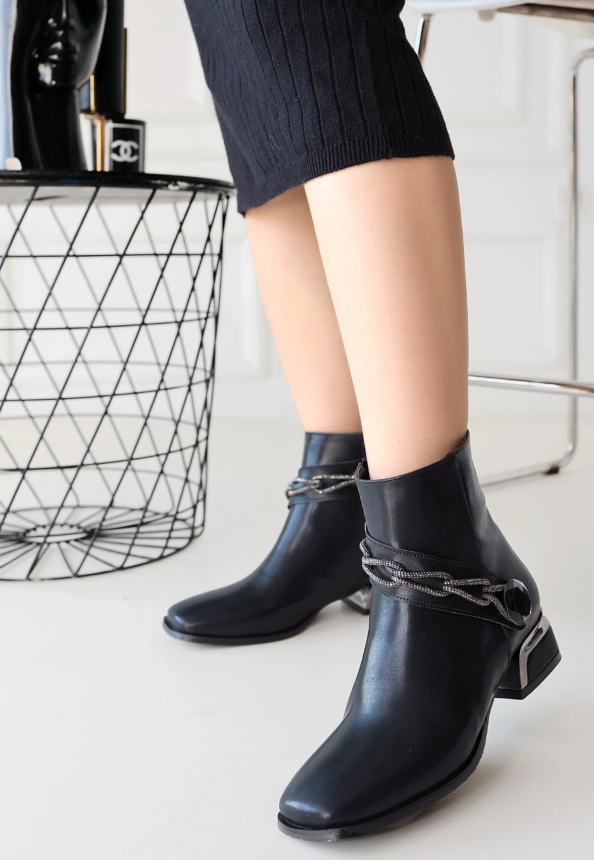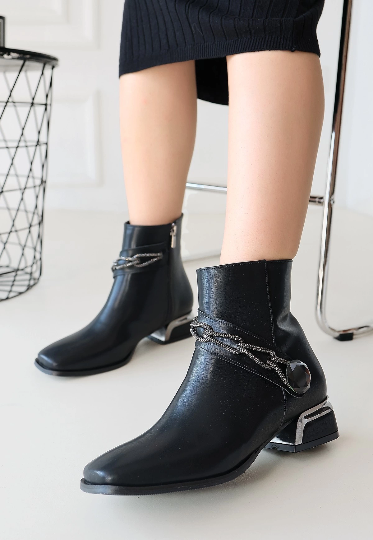 Roxani Siyah Cilt Topuklu Bot