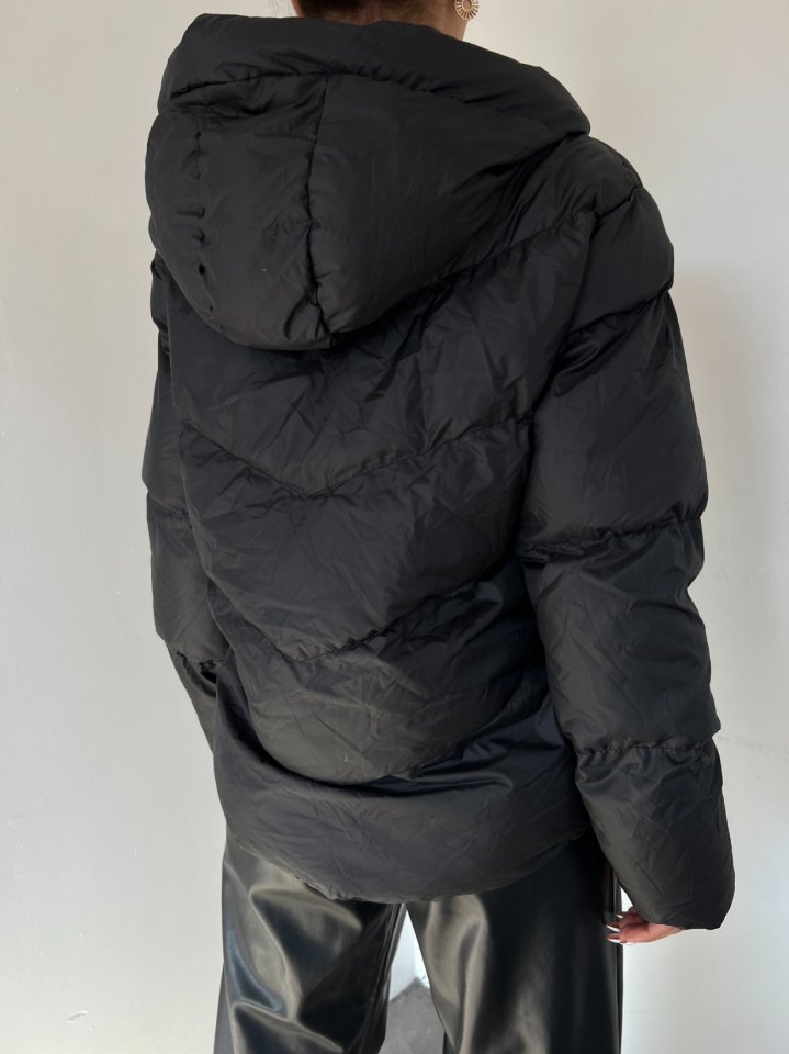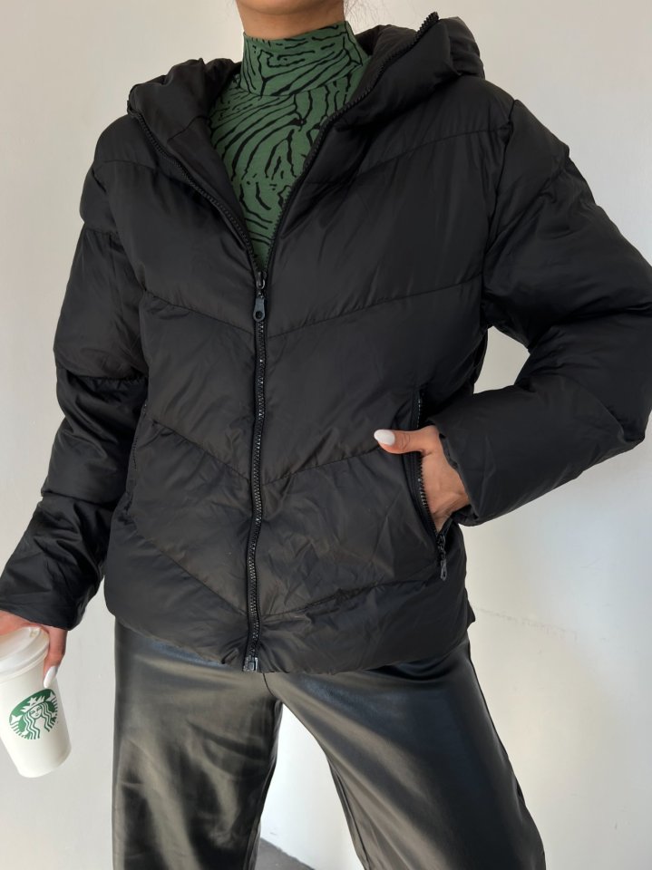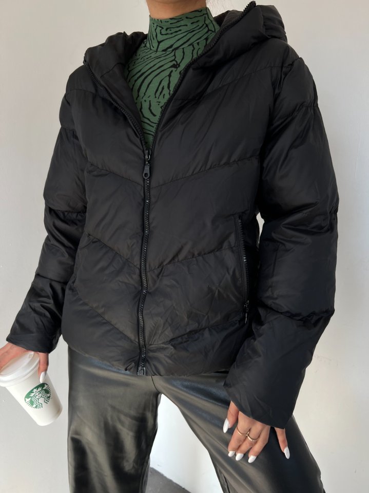 Sabit Kapşonlu Fermuarlı Kışlık Mont -Siyah