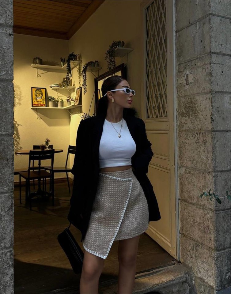 Crop Ceketli Ve Pile Etekli Garnili Takım 10111