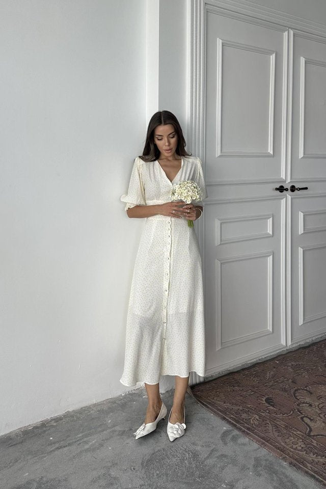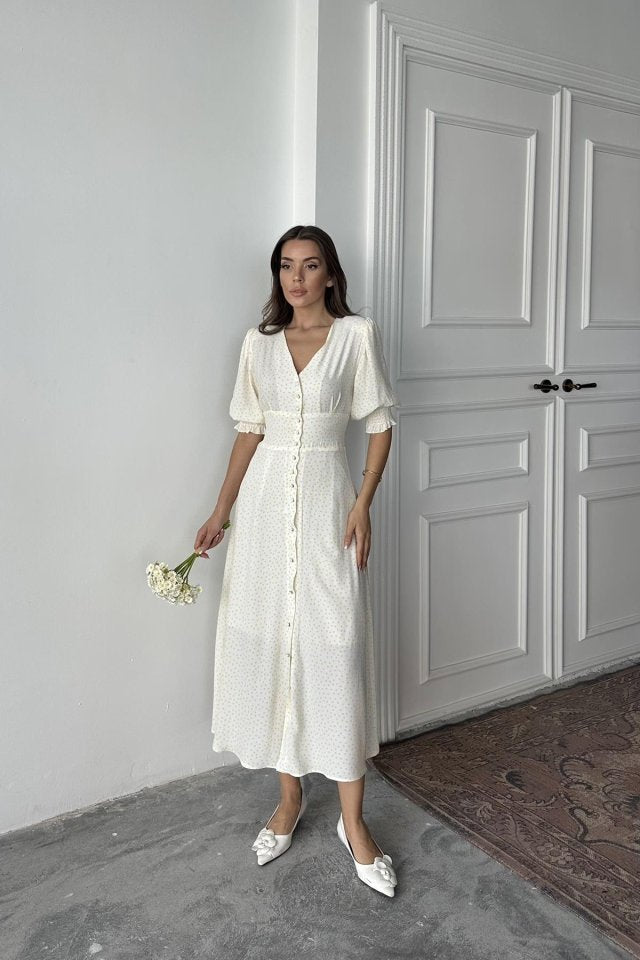 Kadın Kısa Kollu Yakadan Ve Etekten Fermuarlı Midi Viskon Iki Iplik Elbise