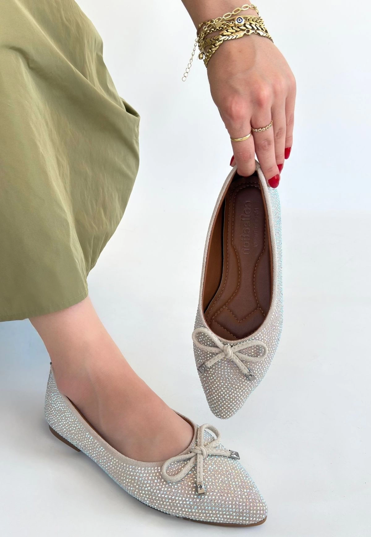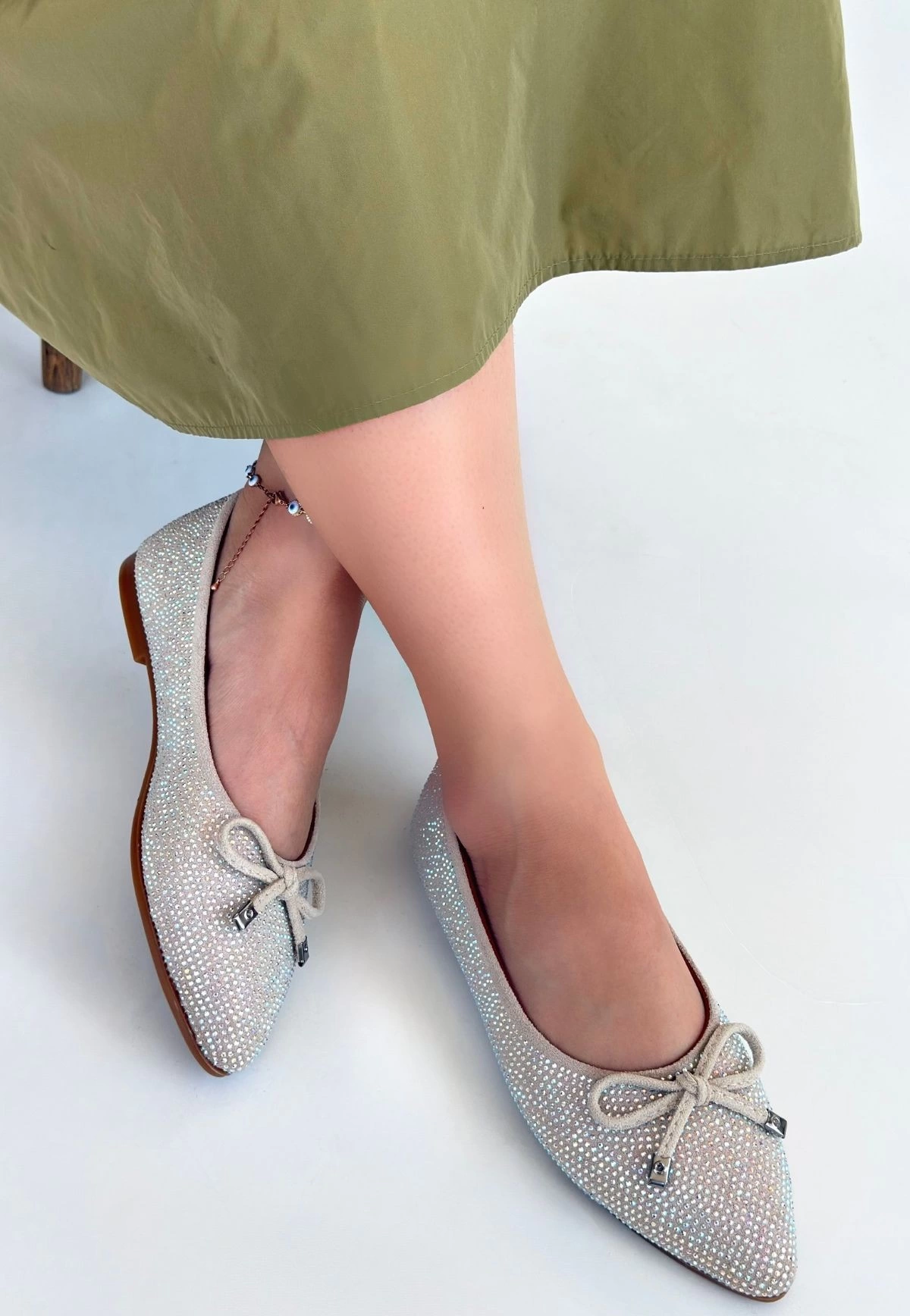 Sarra Bej Saten İşlemeli Babet Ayakkabı