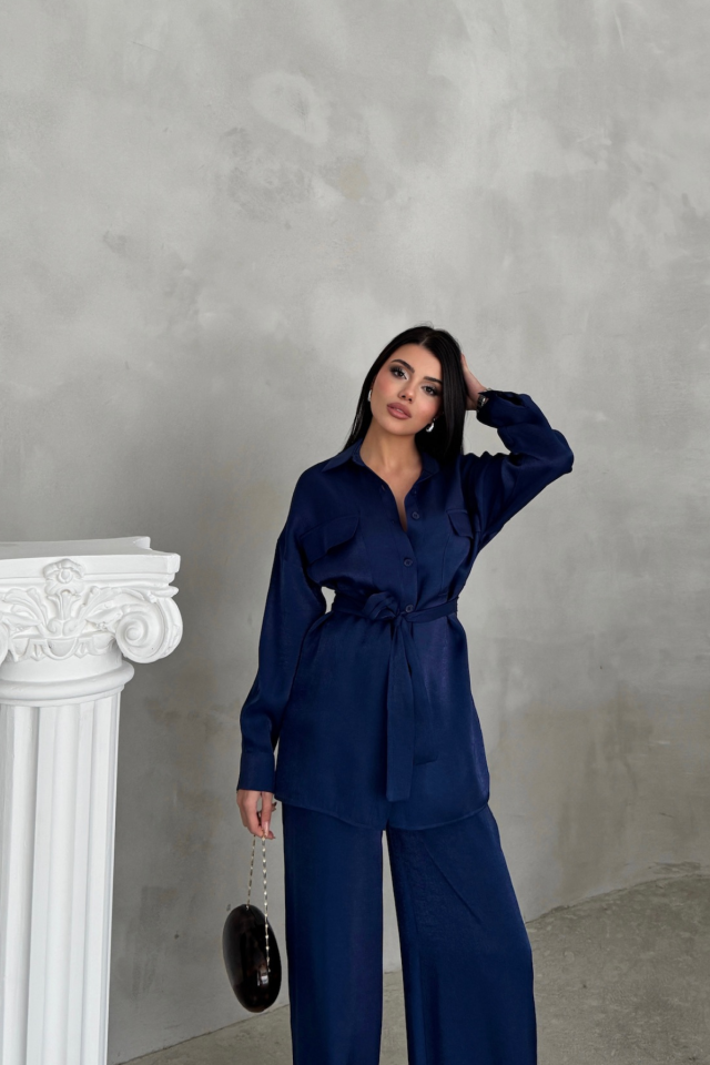 SİMLİ KUMAŞ SALAŞ PANTOLON - GÖMLEK TAKIM - Lacivert