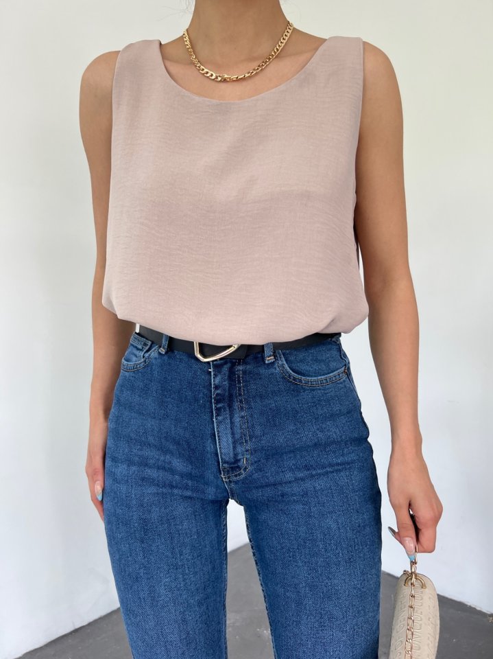 Sıfır Kollu Ayrobin Bluz -Açık Vizon