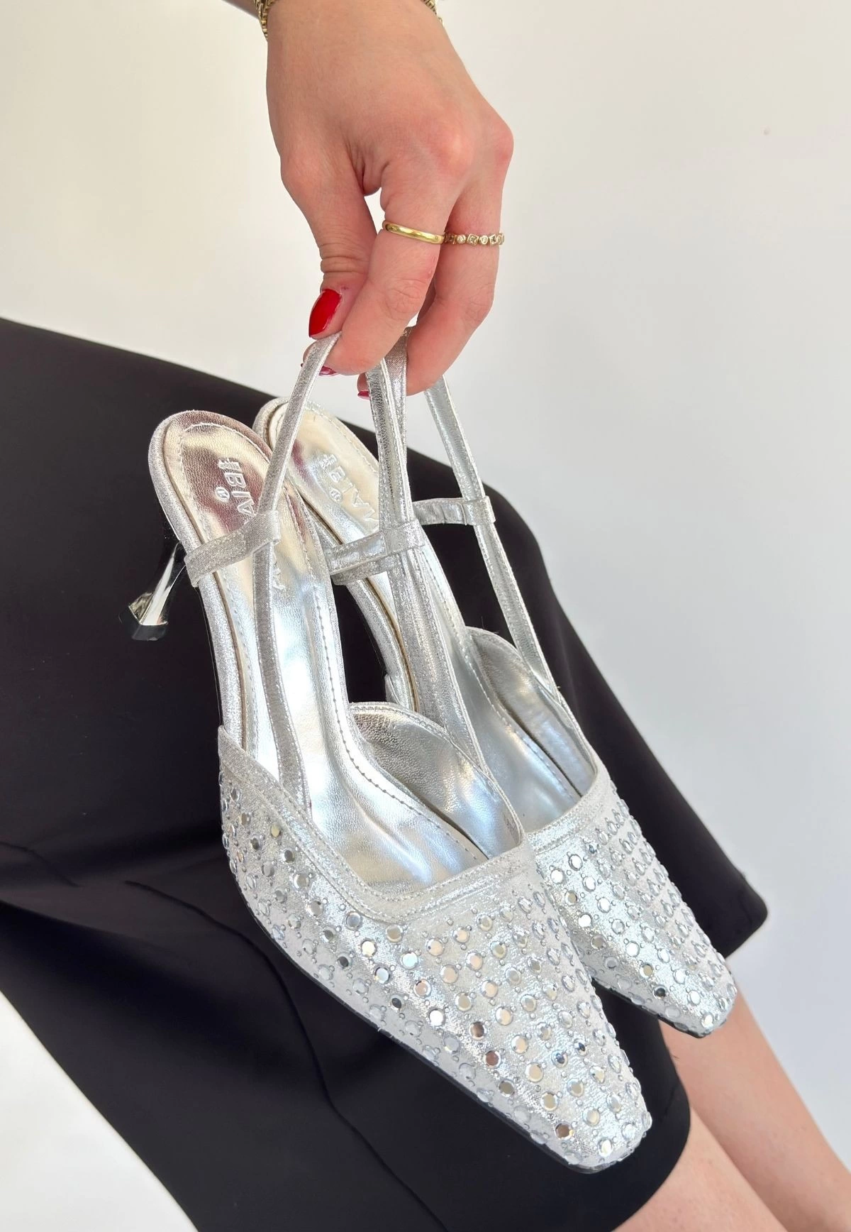 Sione Gümüş Cilt Topuklu Ayakkabı