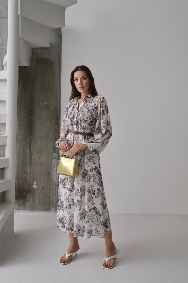 Kadın Uzun Kollu Kruvaze Yaka Büzgü Ve Balon Kol Detay Krep Kumaş Maxi Boy Elbise