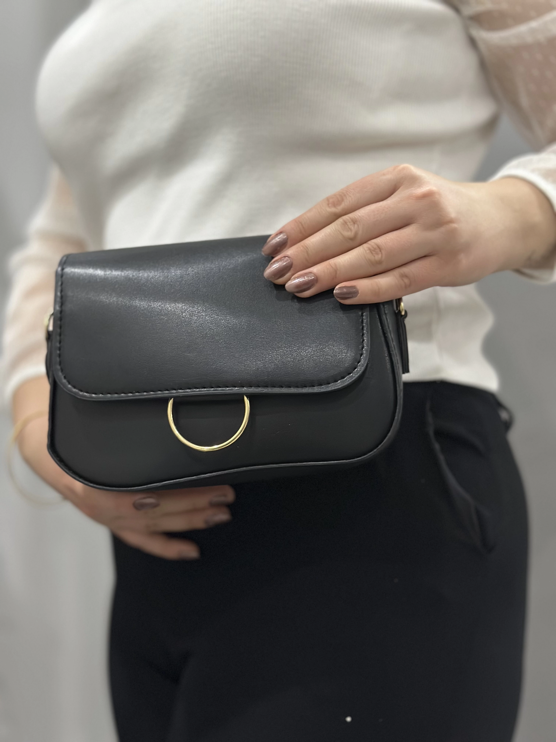 Siyah cilt mossi çanta