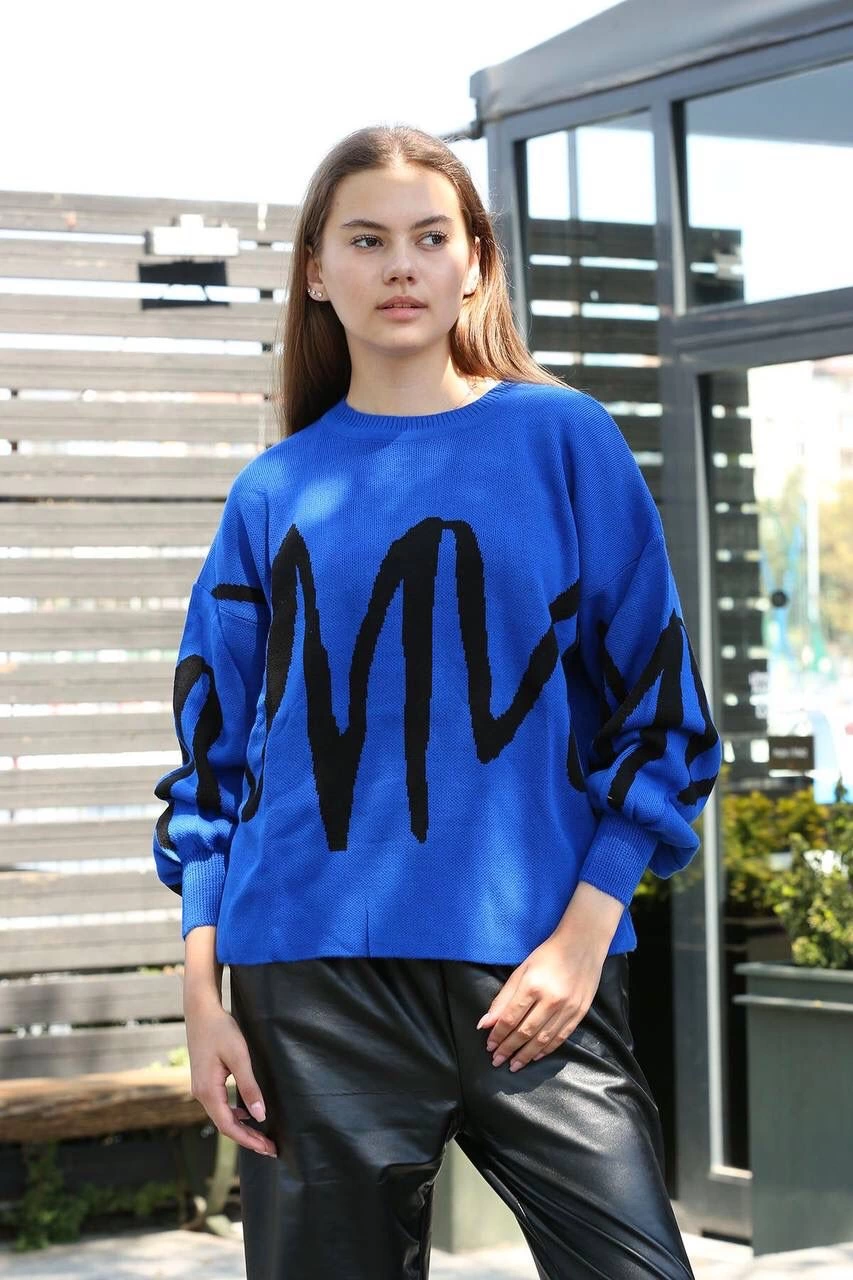 Kadın Uzun Kollu Bisiklet Yaka Desenli Viskon Iki Iplik Bluz