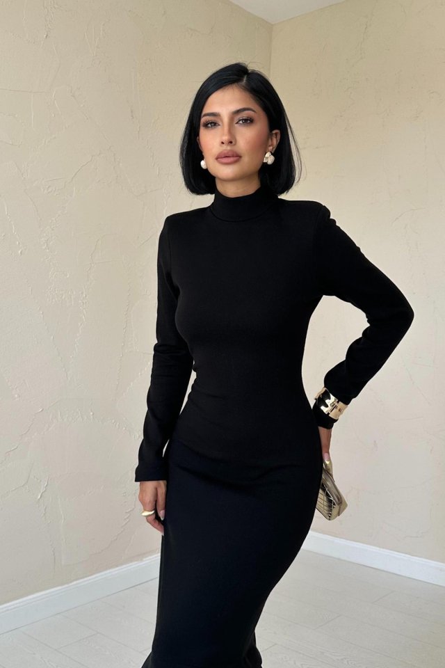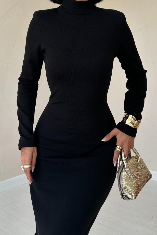 Kadın Kısa Kollu Yakadan Ve Etekten Fermuarlı Midi Viskon Iki Iplik Elbise