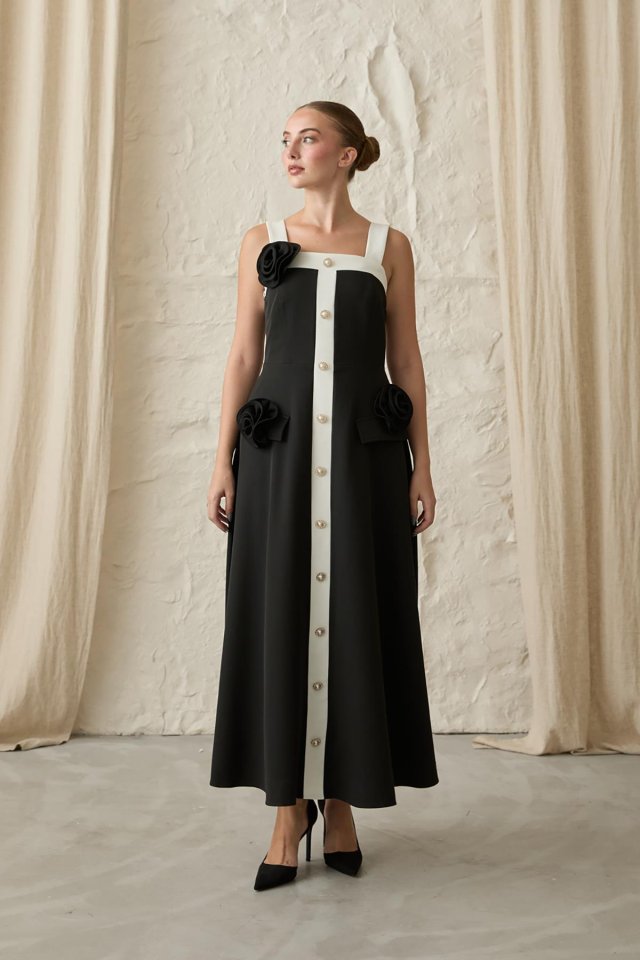 Kadın Kısa Kollu Yakadan Ve Etekten Fermuarlı Midi Viskon Iki Iplik Elbise