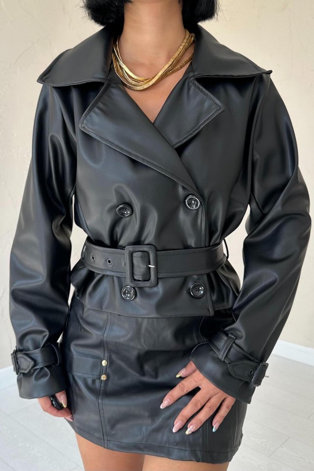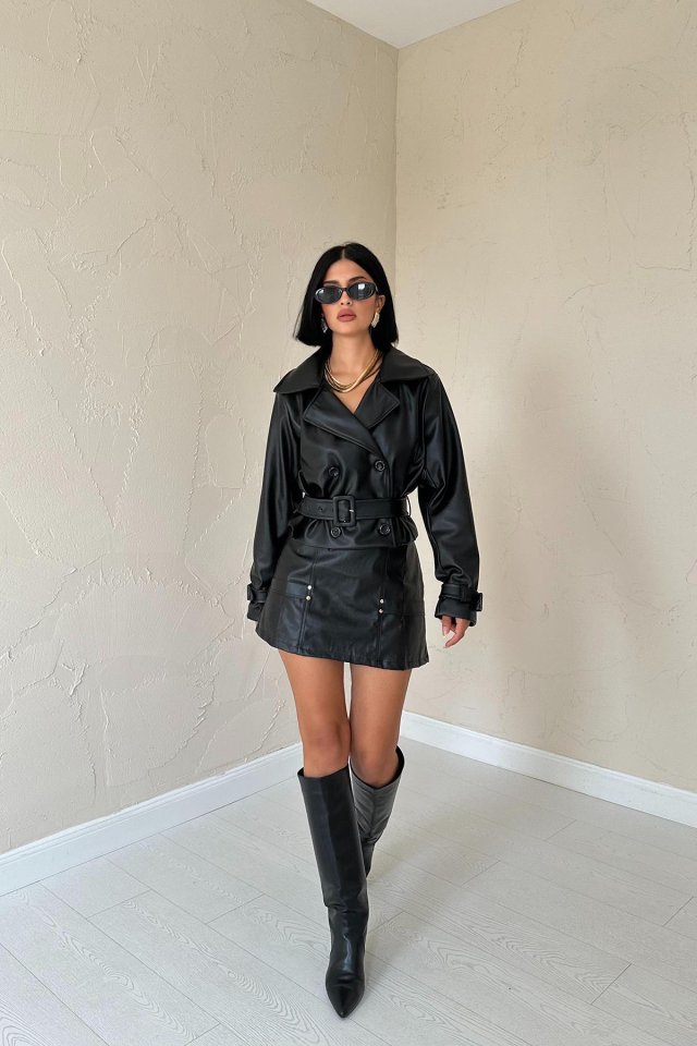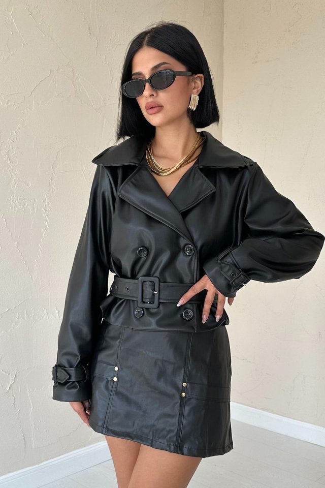 Crop Ceketli Ve Pile Etekli Garnili Takım 10111