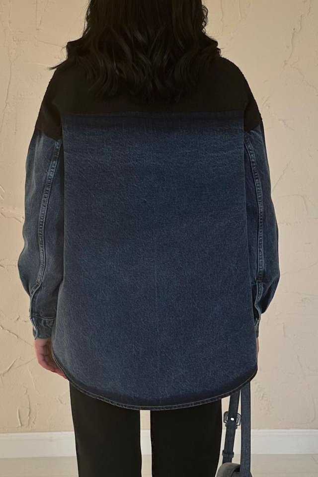 Kadın Uzun Kollu Yakadan Fermuarlı Kot Görünüm Desenli Uzun Modal Bluz