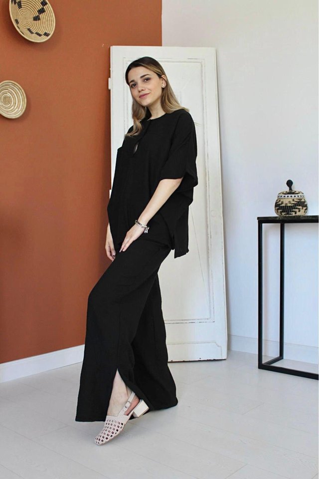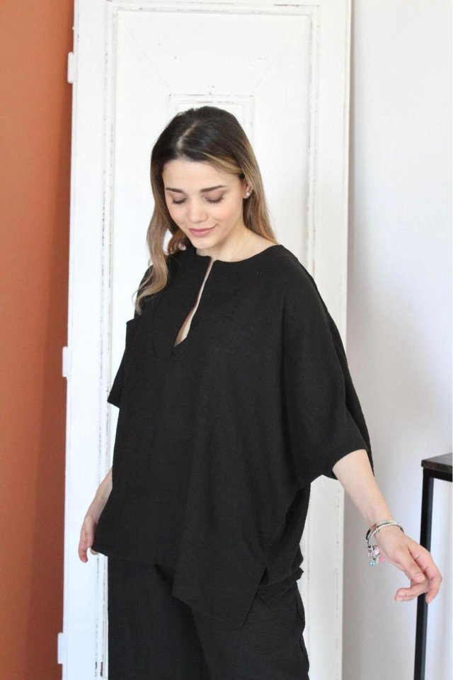 Kadın Uzun Kollu Tek Omuz Askı Detay Salaş Viskon Iki Iplik Bluz