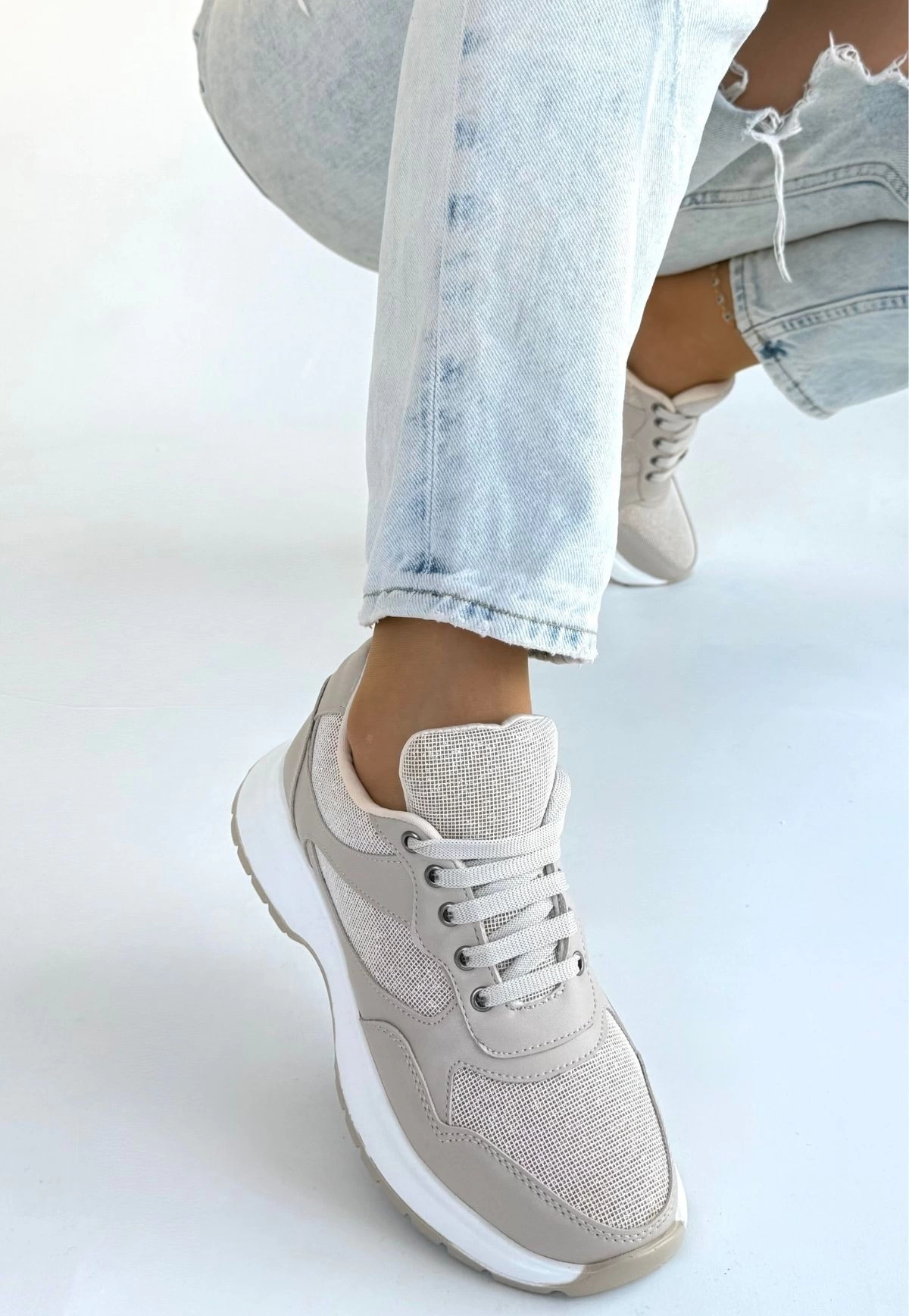 Slar Bej Cilt Bağcıklı Spor Ayakkabı