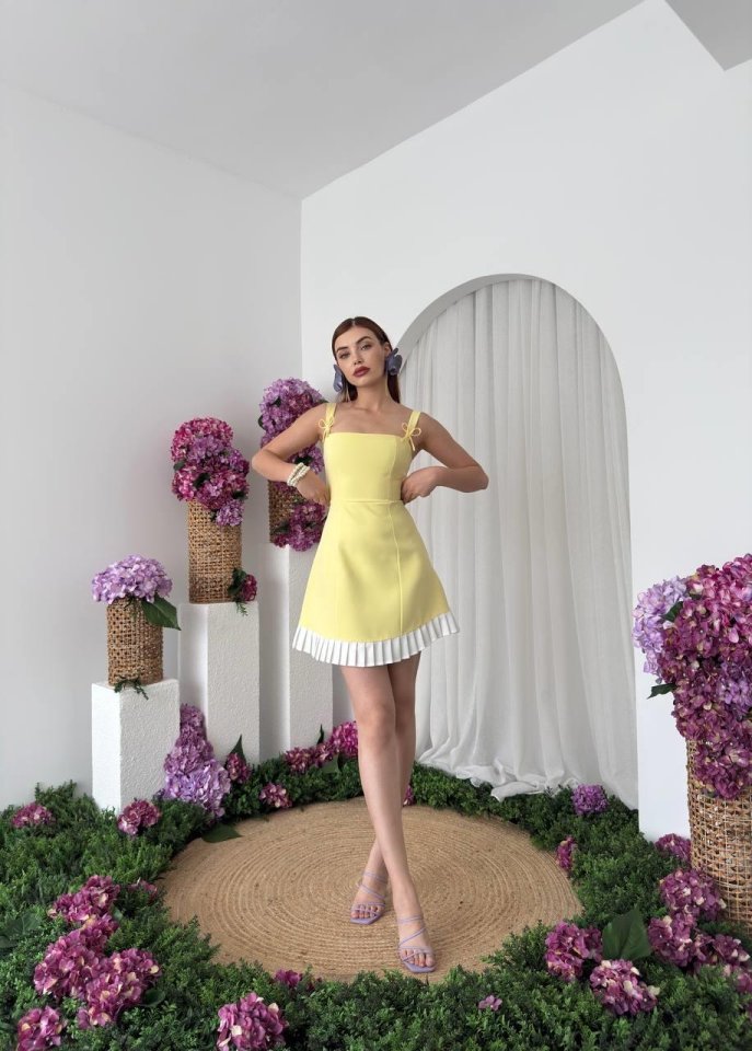 Kadın Madonna Mendil Yaka Fırsat ürün Büzgülü Mini Elbise