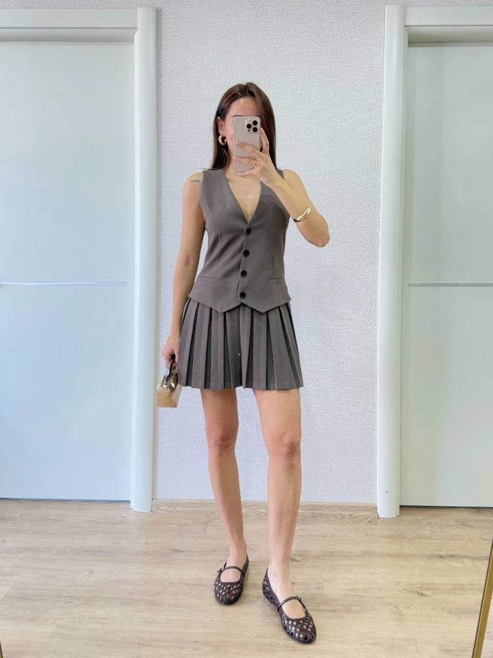 Takım Görünümlu Yelekli Mini Elbise- Füme