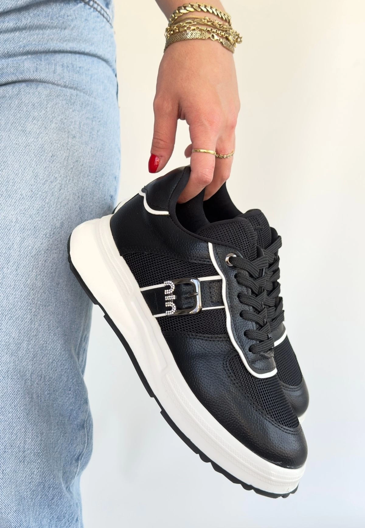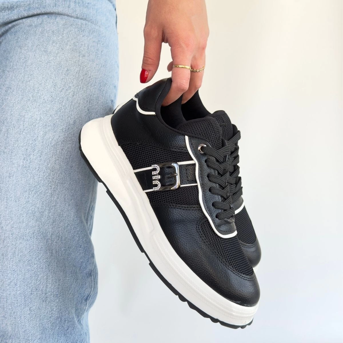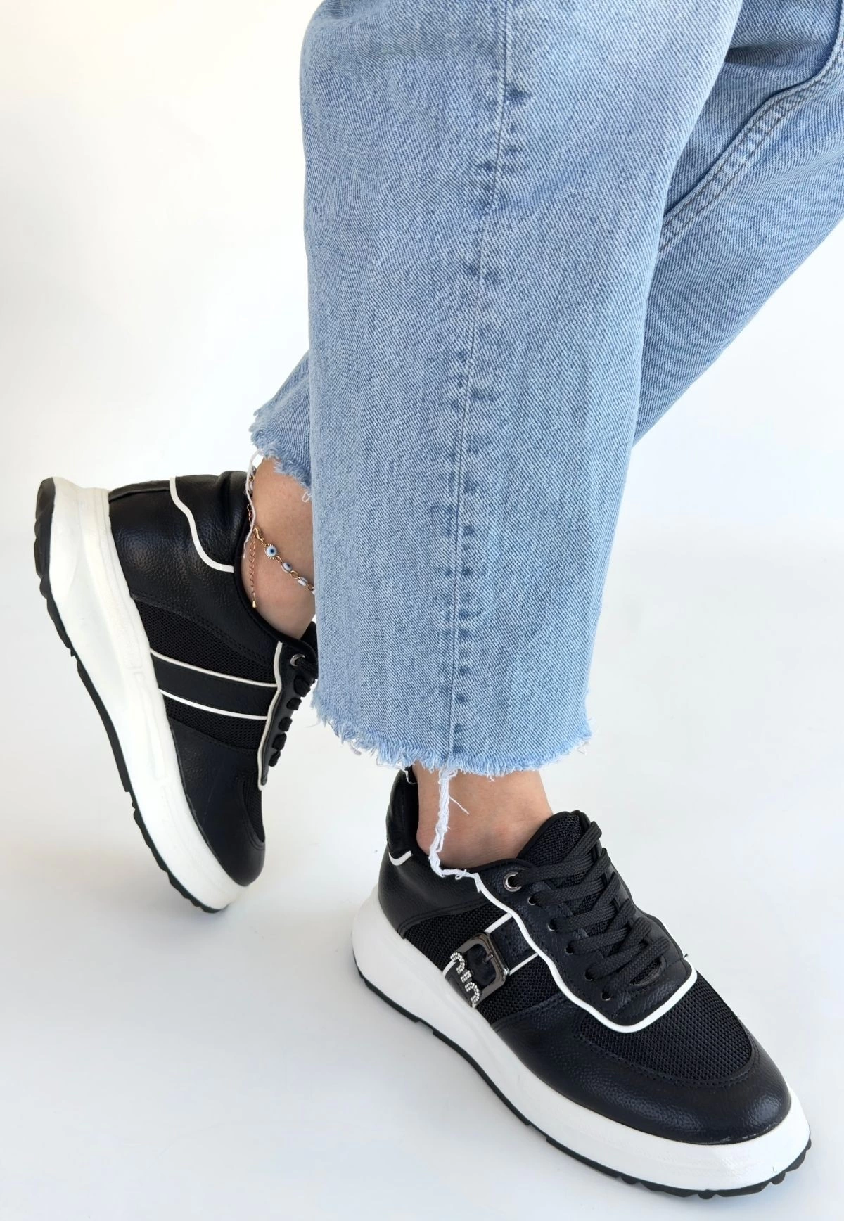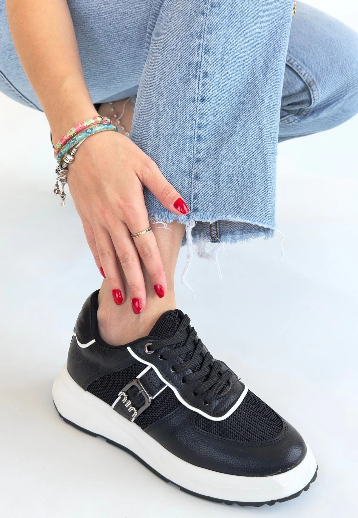 Tanwe Siyah Cilt Bağcıklı Spor Ayakkabı