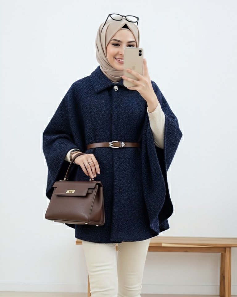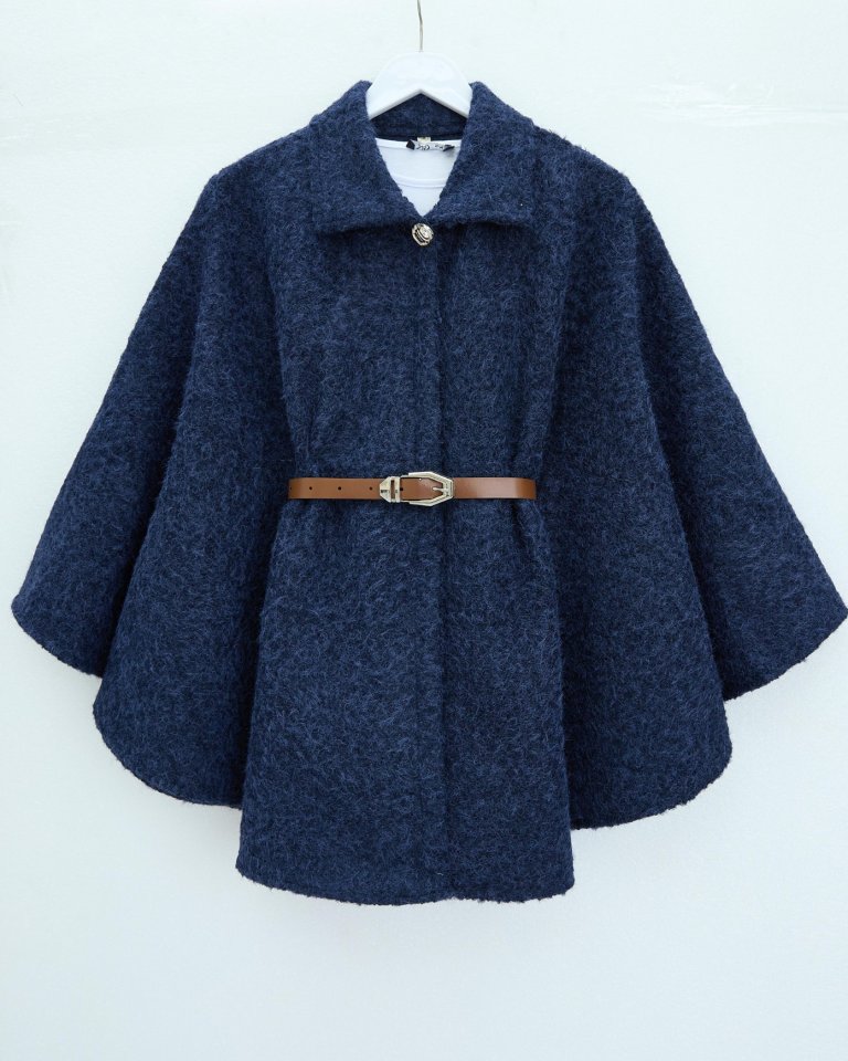 Tek Düğmeli Beli Kemerli Sakallı Panço -Laci