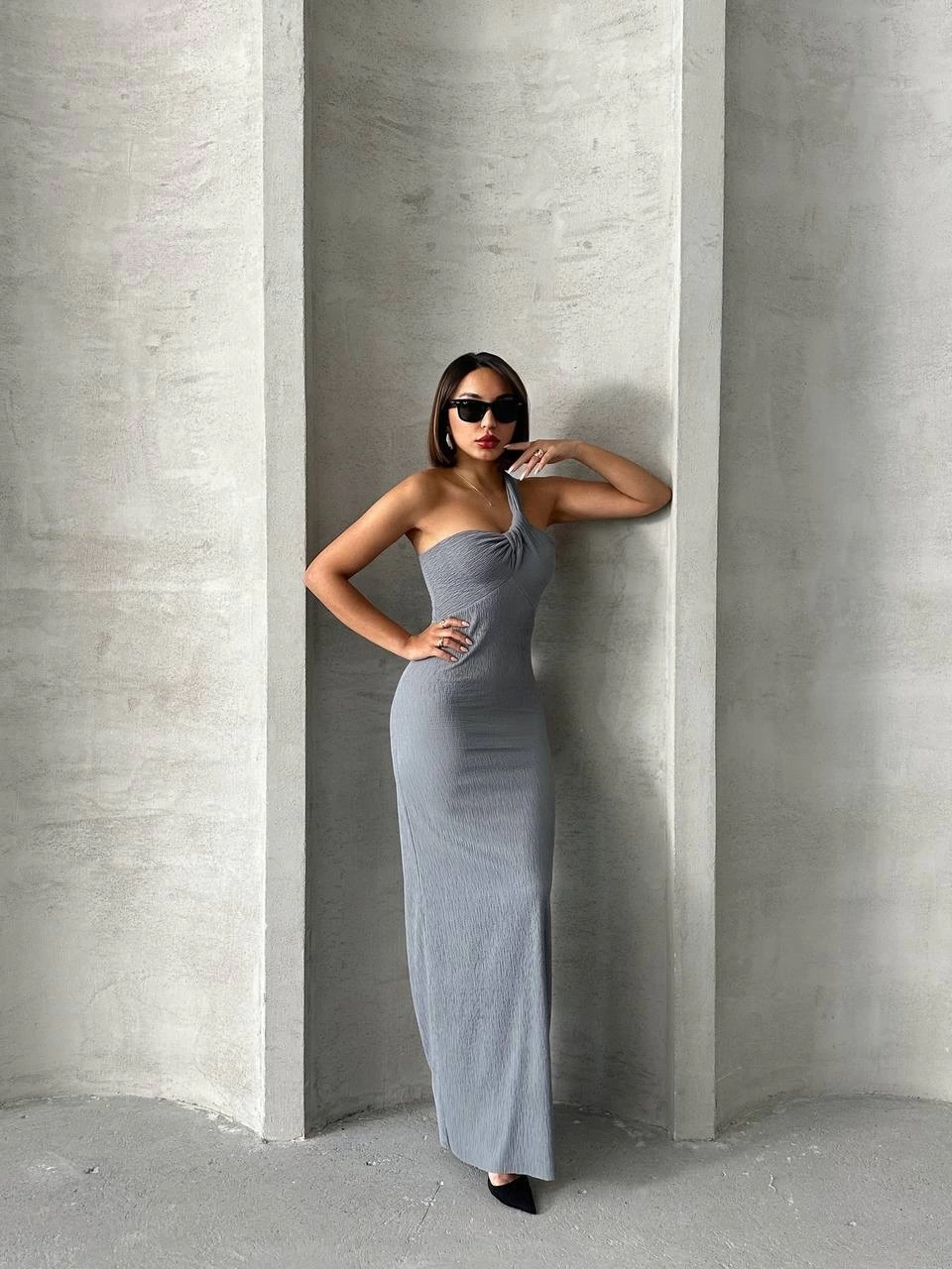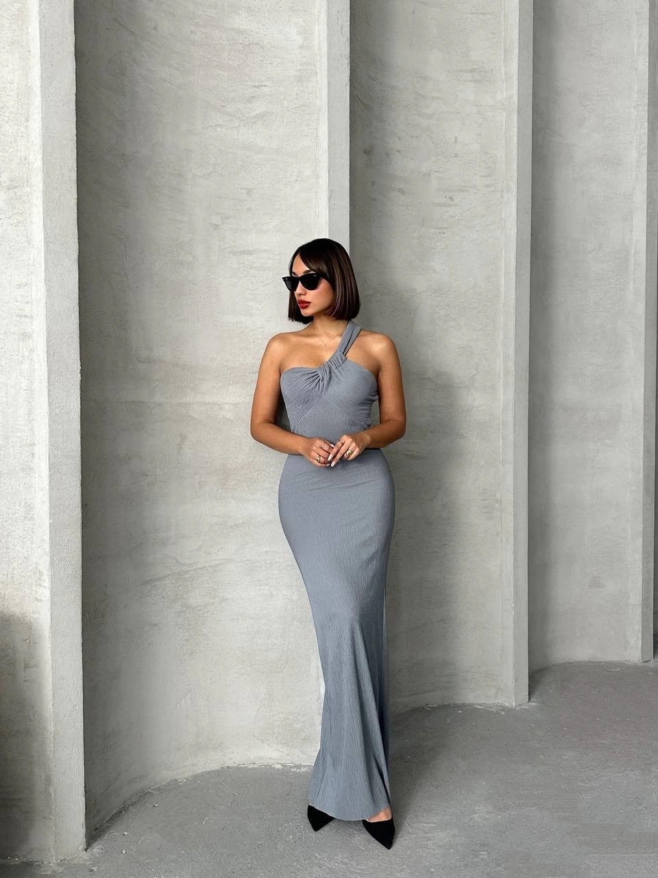 Kadın Uzun Kollu Tek Omuz Askı Detay Salaş Viskon Iki Iplik Bluz