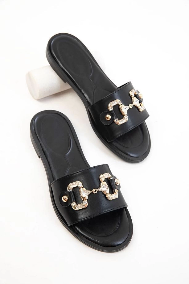 Toha Siyah Cilt Tokalı Terlik