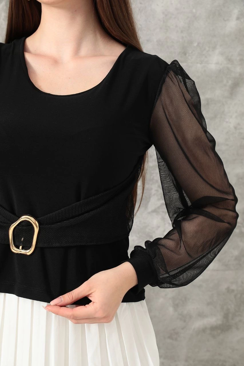 Kadın Uzun Kollu Tek Omuz Askı Detay Salaş Viskon Iki Iplik Bluz