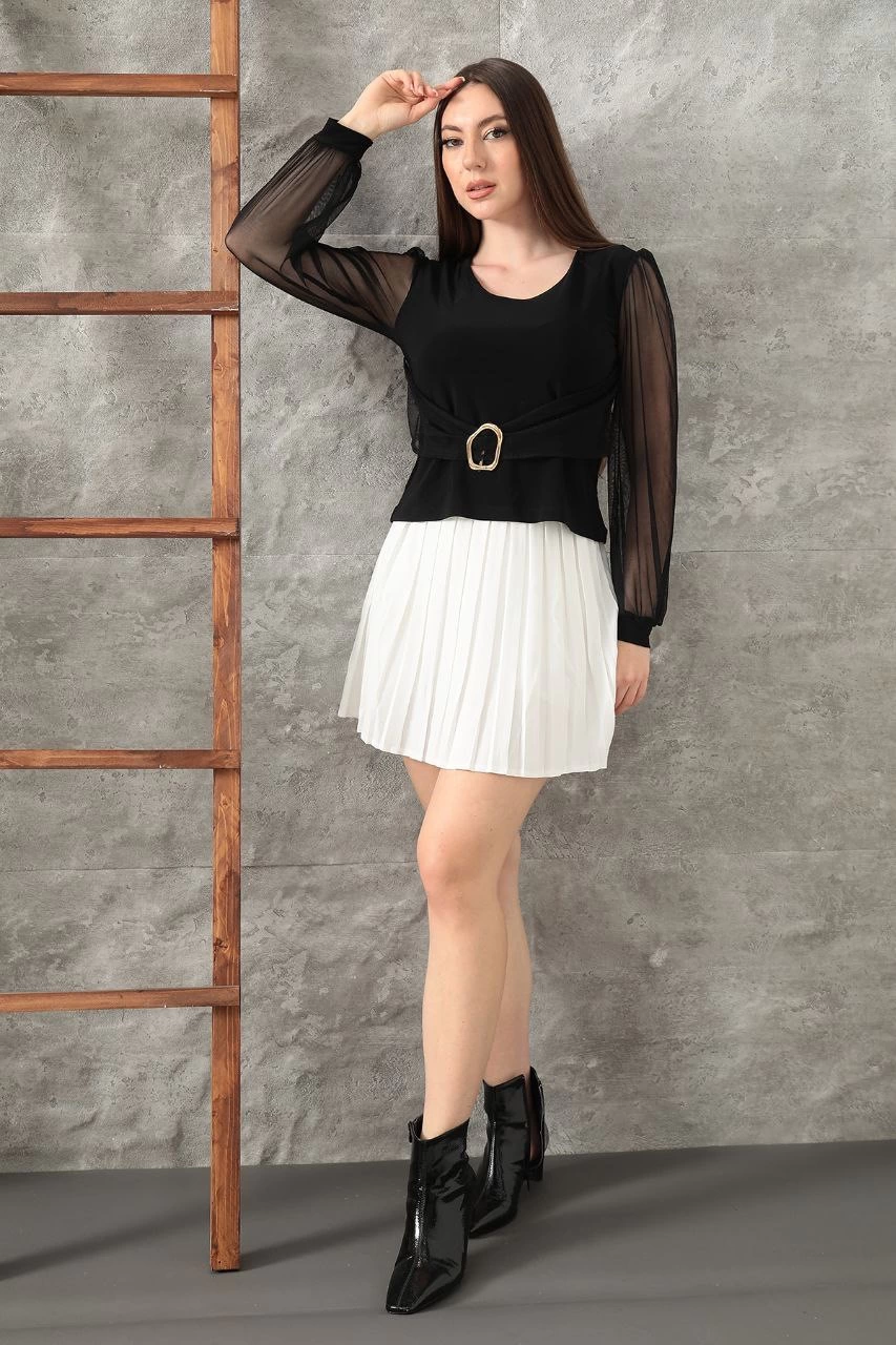 Crop Ceketli Ve Pile Etekli Garnili Takım 10111