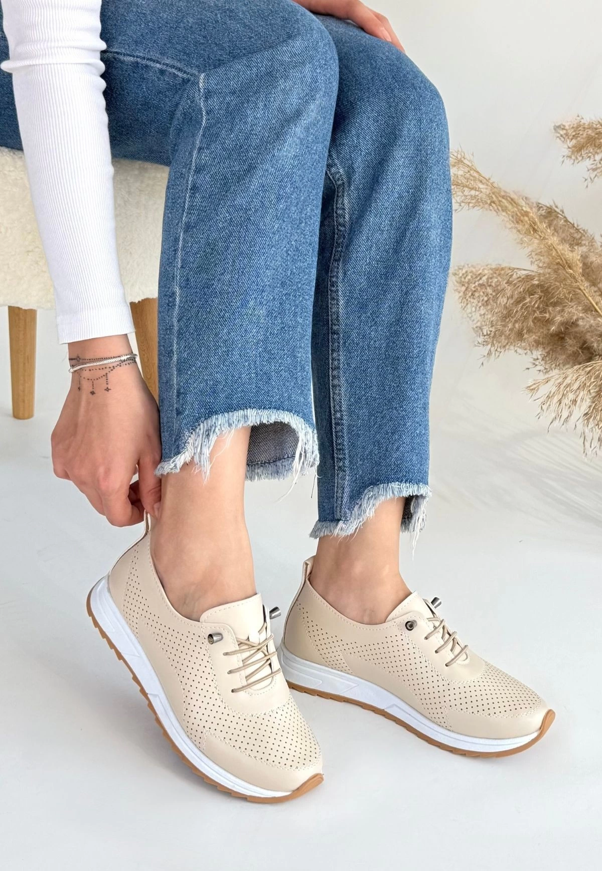 Tone Bej Cilt Bağcıklı Spor Ayakkabı
