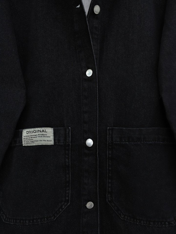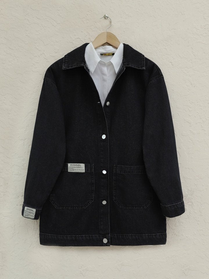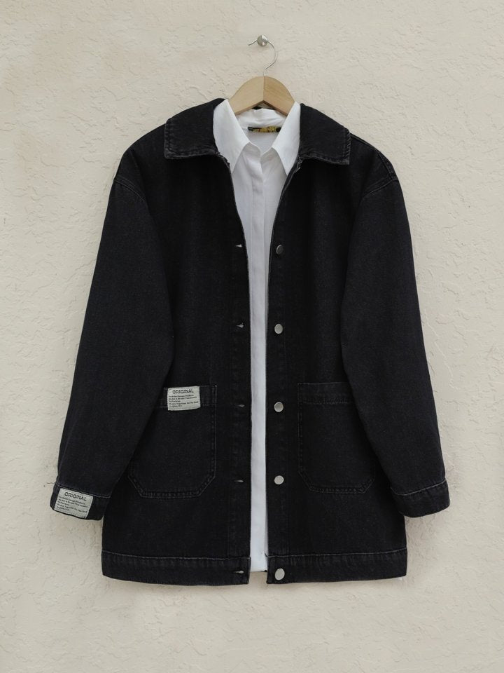 Torba Cepli Düğmeli Kot Ceket -Siyah